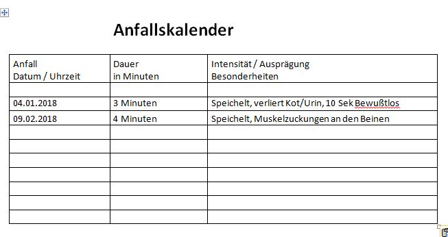 Der sogenannte Anfallskalender dokumentiert stattgefundene Anfälle