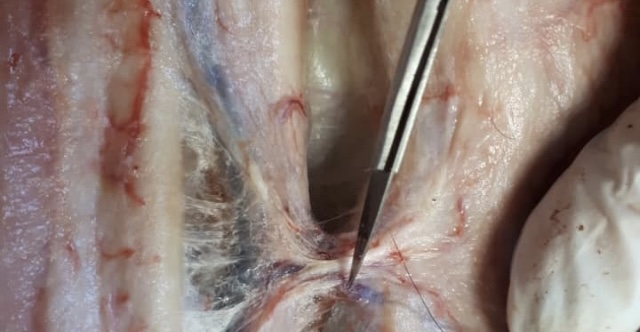 Es wird ein kompletter Kopf bis 3. Halswirbel seziert, die Teilnehmer dürfen sich abwechseln und werden von der Tierärztin angeleitet.