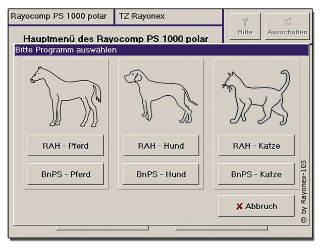 - Testung und Therapie mit dem Rayonex Analyse-, und Harmonisierungssystem VET (RAH-VET)